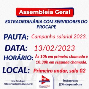 Categorias Notícias Assembleia Extraordinária com servidores do PROCAPE Autor do post Por André Gustavo Data de publicação fevereiro 11, 2023 Seguem informações abaixo: ← Alerta de golpe! → Paralização de 24H da enfermagem da UPE